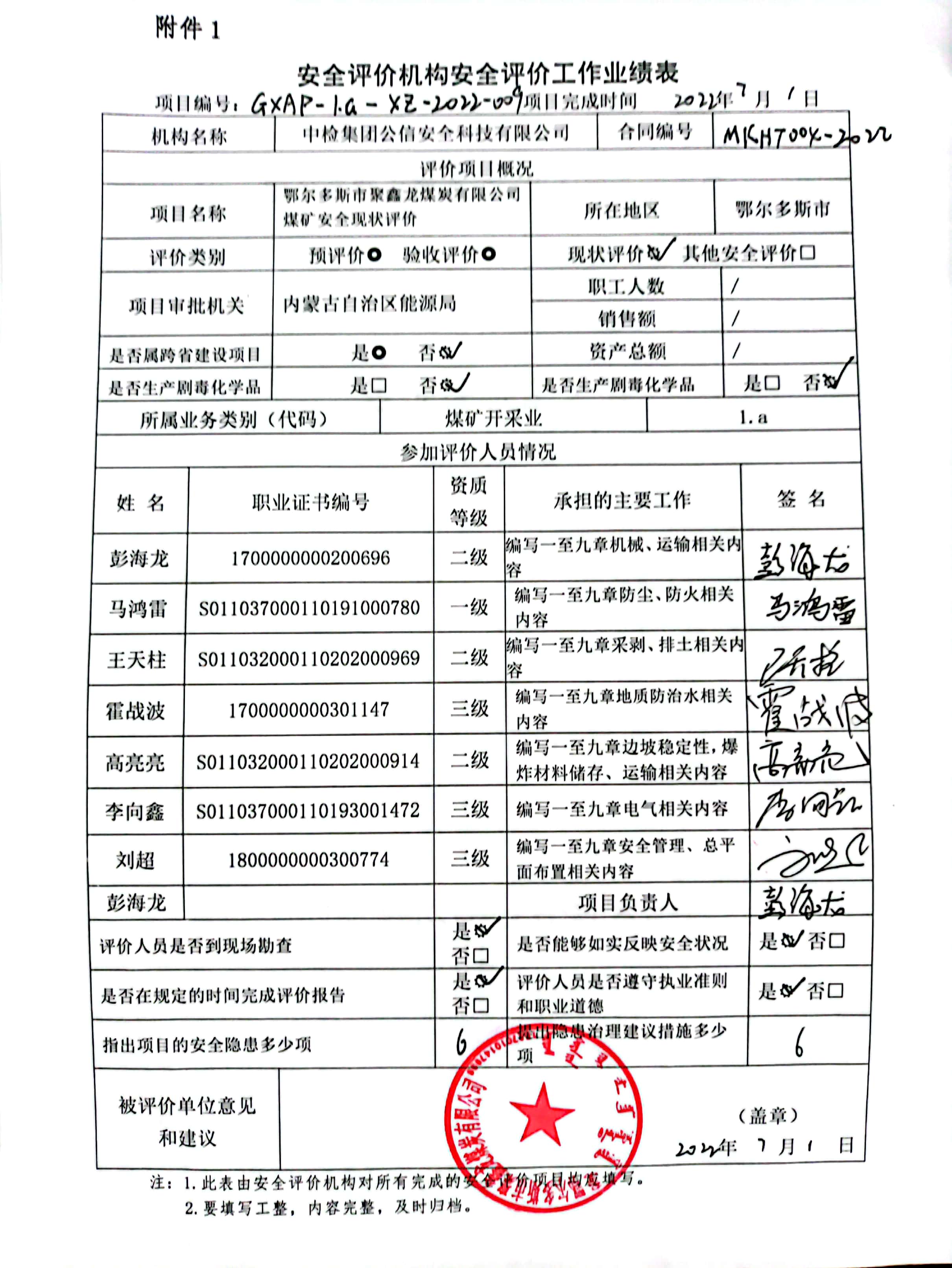 評價項目名稱 | 鄂爾多斯市聚鑫龍煤炭有限公司煤礦安全現(xiàn)狀評價報告 | ||||||