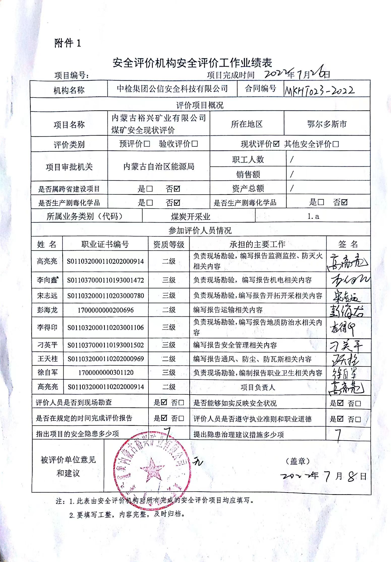 評價項目名稱 | 內(nèi)蒙古裕興礦業(yè)有限公司煤礦安全現(xiàn)狀評價報告 | ||||||