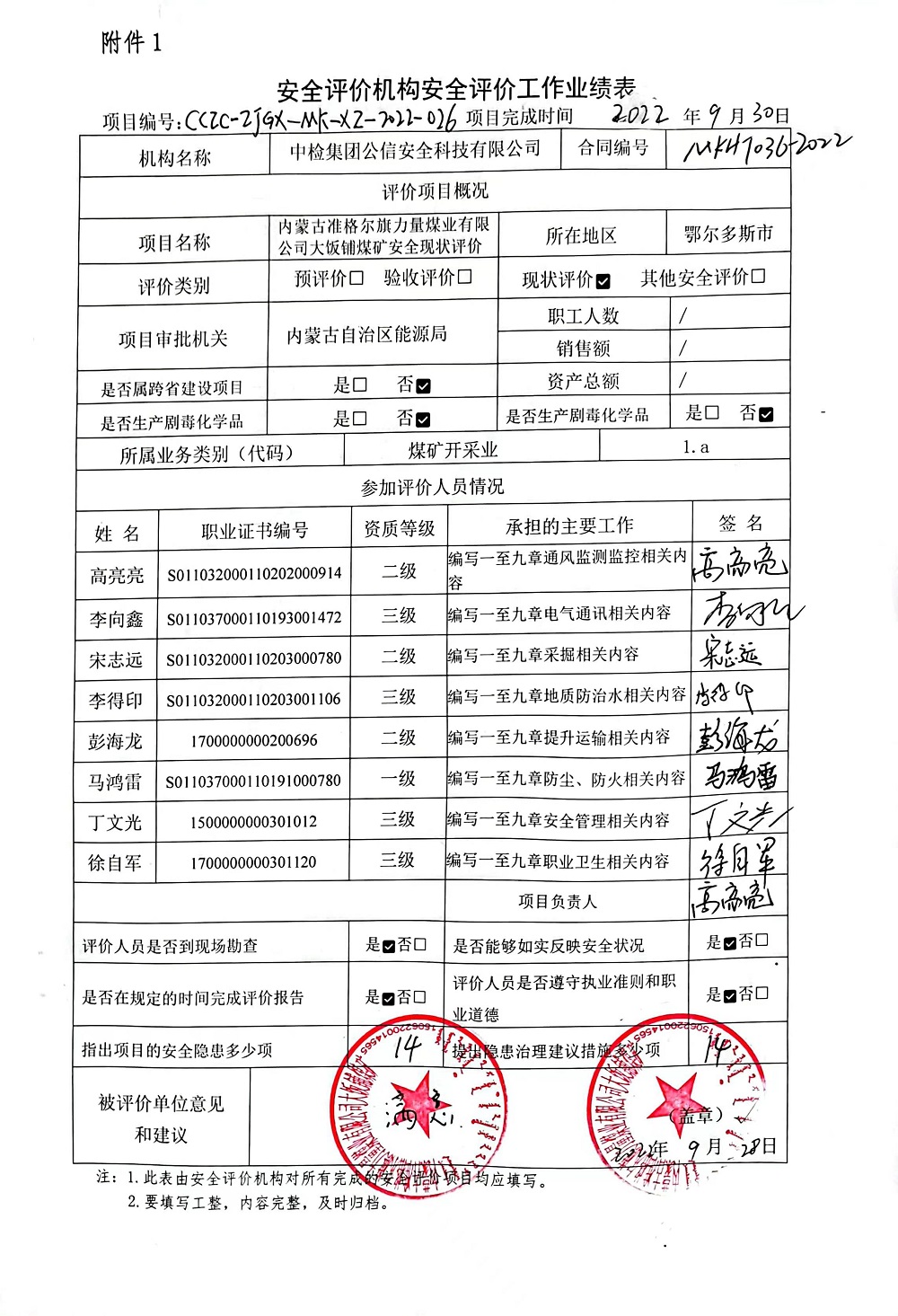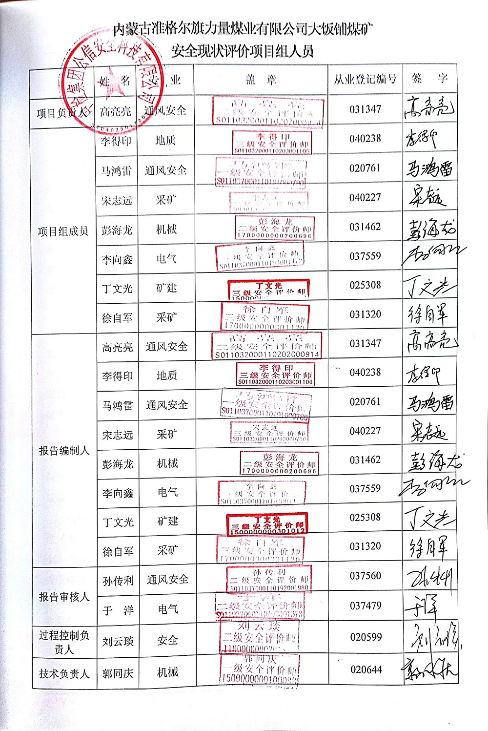 評價項目名稱 | 內(nèi)蒙古準格爾旗力量煤業(yè)有限公司大飯鋪煤礦安全現(xiàn)狀評價報告 | ||||||