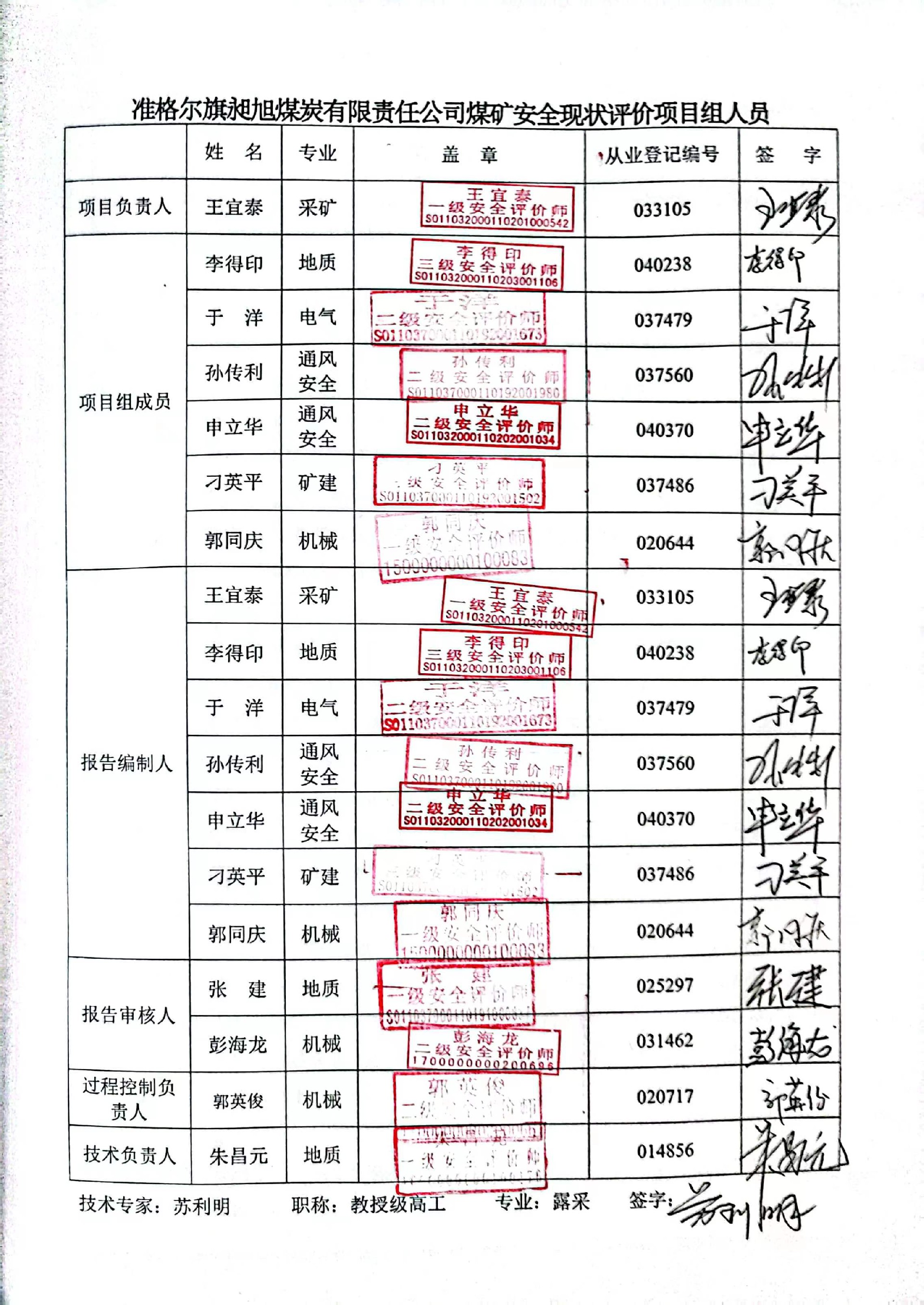 評價項目名稱 | 準格爾旗昶旭煤炭有限責任公司煤礦 安全現(xiàn)狀評價報告 | ||||||