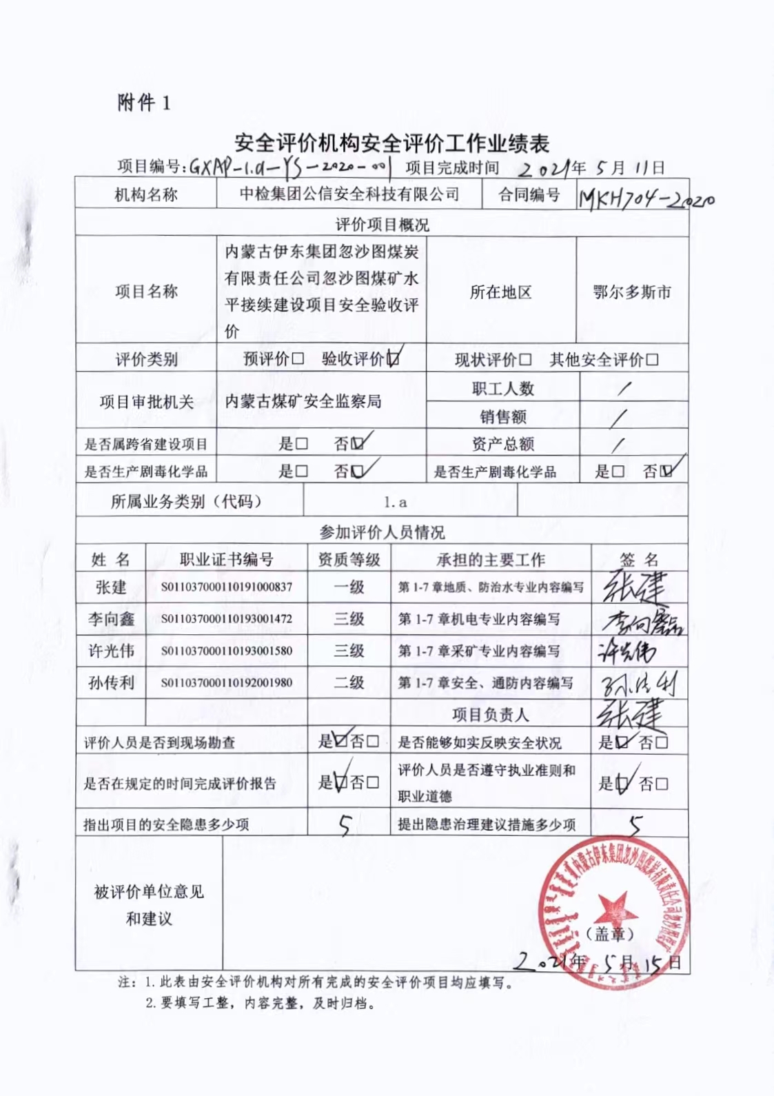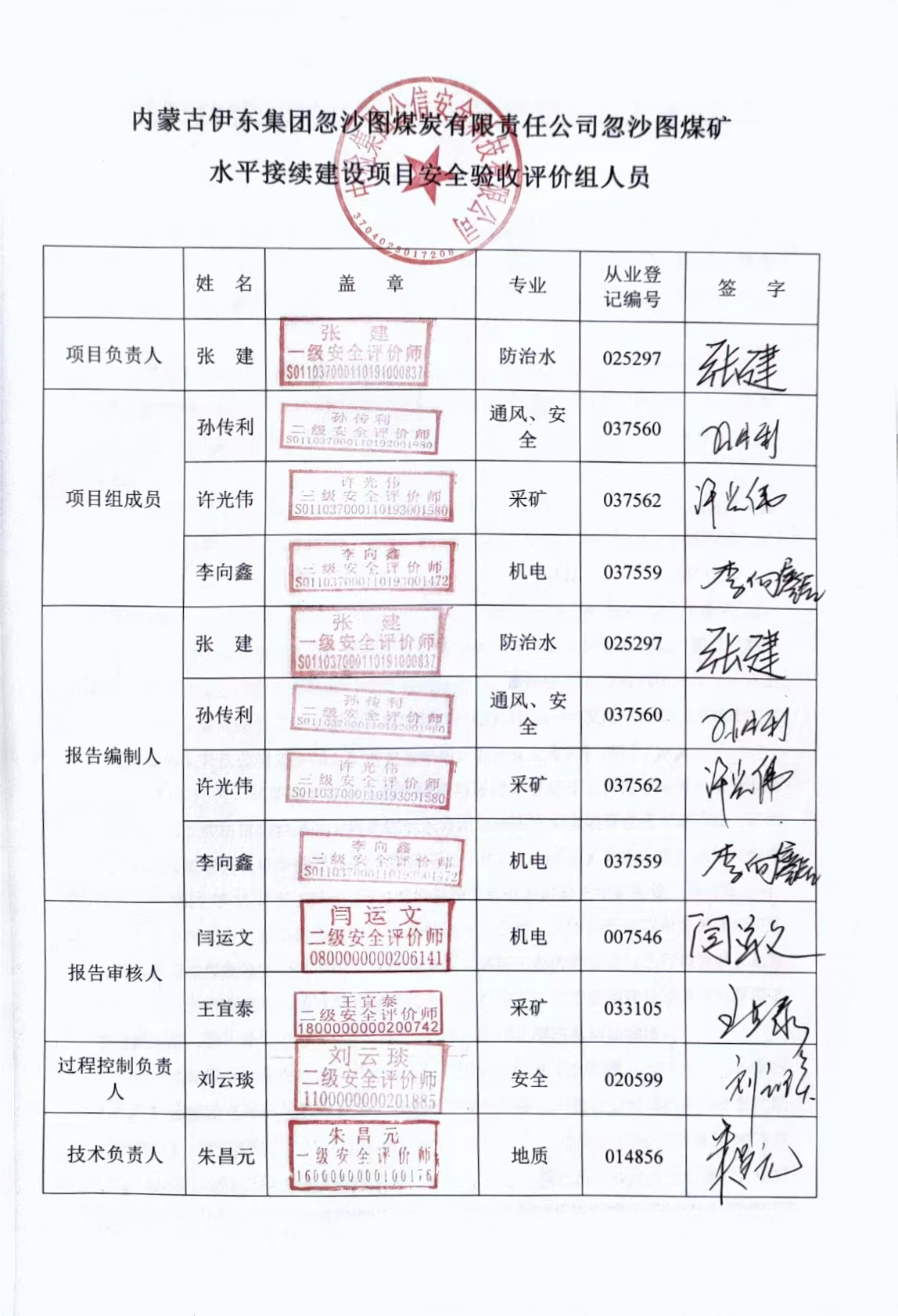 評價項(xiàng)目名稱 | 內(nèi)蒙古伊東集團(tuán)忽沙圖煤炭有限責(zé)任公司忽沙圖煤礦水平接續(xù)建設(shè)項(xiàng)目安全驗(yàn)收評價 | ||||||