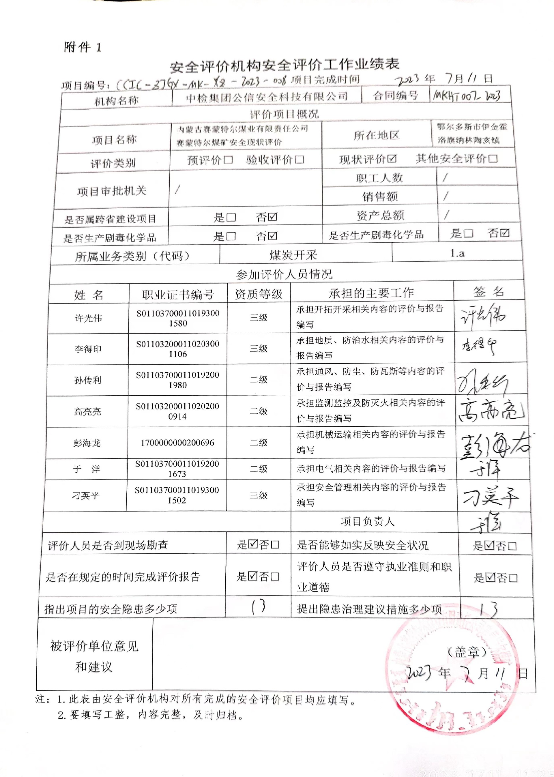 評(píng)價(jià)項(xiàng)目名稱 | 內(nèi)蒙古賽蒙特爾煤業(yè)有限責(zé)任公司賽蒙特爾煤礦安全現(xiàn)狀評(píng)價(jià) | ||||||