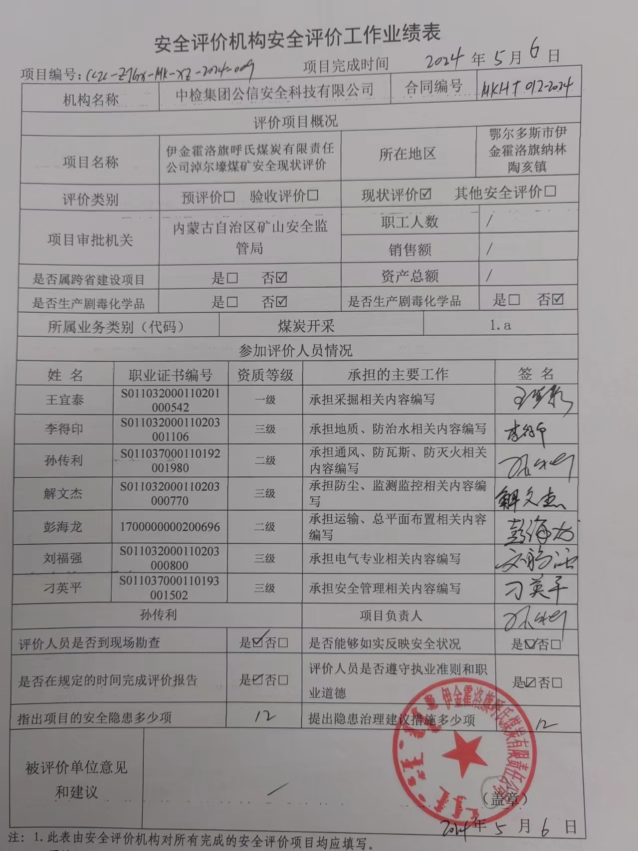 評價項目名稱 | 伊金霍洛旗呼氏煤炭有限責任公司淖爾壕煤礦安全現(xiàn)狀評價 | ||||||