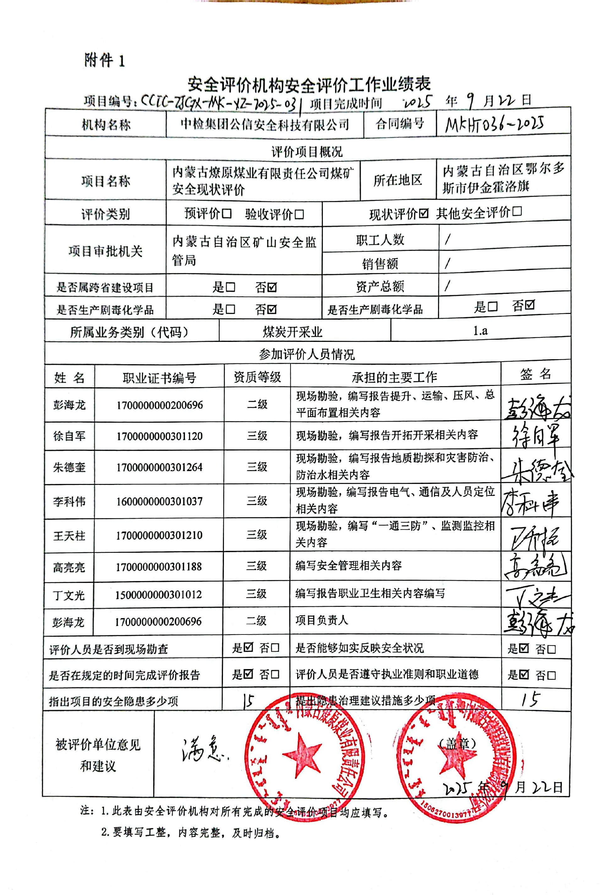 評價(jià)項(xiàng)目名稱 | 內(nèi)蒙古燎原煤業(yè)有限責(zé)任公司煤礦安全現(xiàn)狀評價(jià)報(bào)告 | ||||||