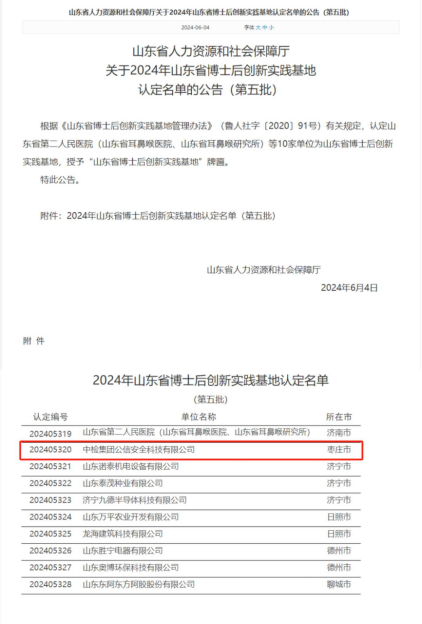2024年6月4日,山東省人力資源和社會(huì)保障廳公布了關(guān)于山東省博士后創(chuàng)新實(shí)踐基地認(rèn)定名單的公告(第五批),中檢集團(tuán)公信安全科技有限公司成功通過認(rèn)定。博士后創(chuàng)新實(shí)踐基地,是企業(yè)引進(jìn)和培養(yǎng)人···