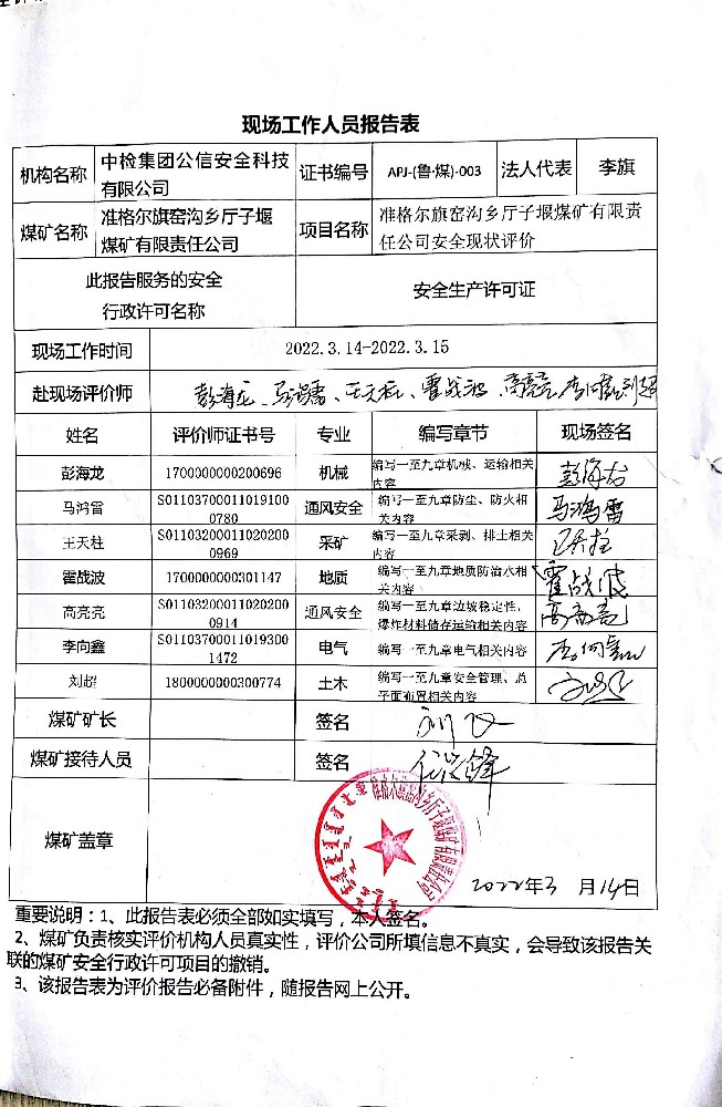 2022年第2季度8準(zhǔn)格爾旗窯溝鄉(xiāng)廳子堰煤礦有限責(zé)任公司安全現(xiàn)狀評(píng)價(jià)