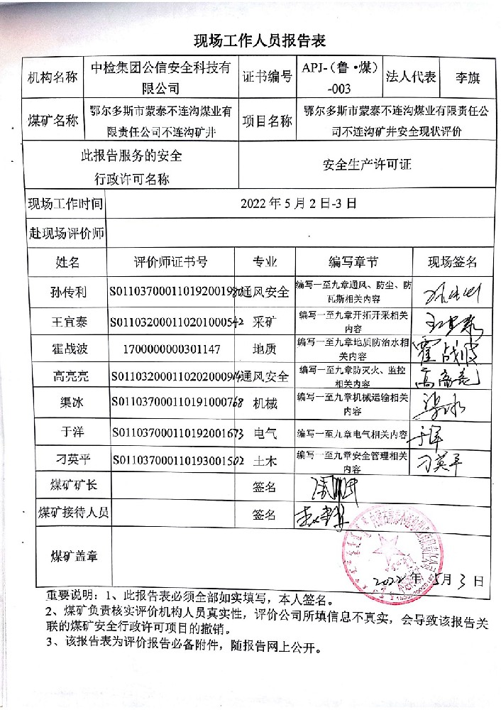 安全評(píng)價(jià)報(bào)告網(wǎng)上公開(kāi)信息表 季度: 二季度 評(píng)價(jià)項(xiàng)目名稱(chēng) 內(nèi)蒙古滿(mǎn)世煤炭集團(tuán)罐子溝煤炭有限責(zé)任公司