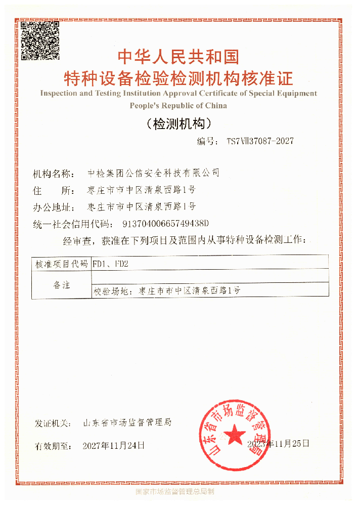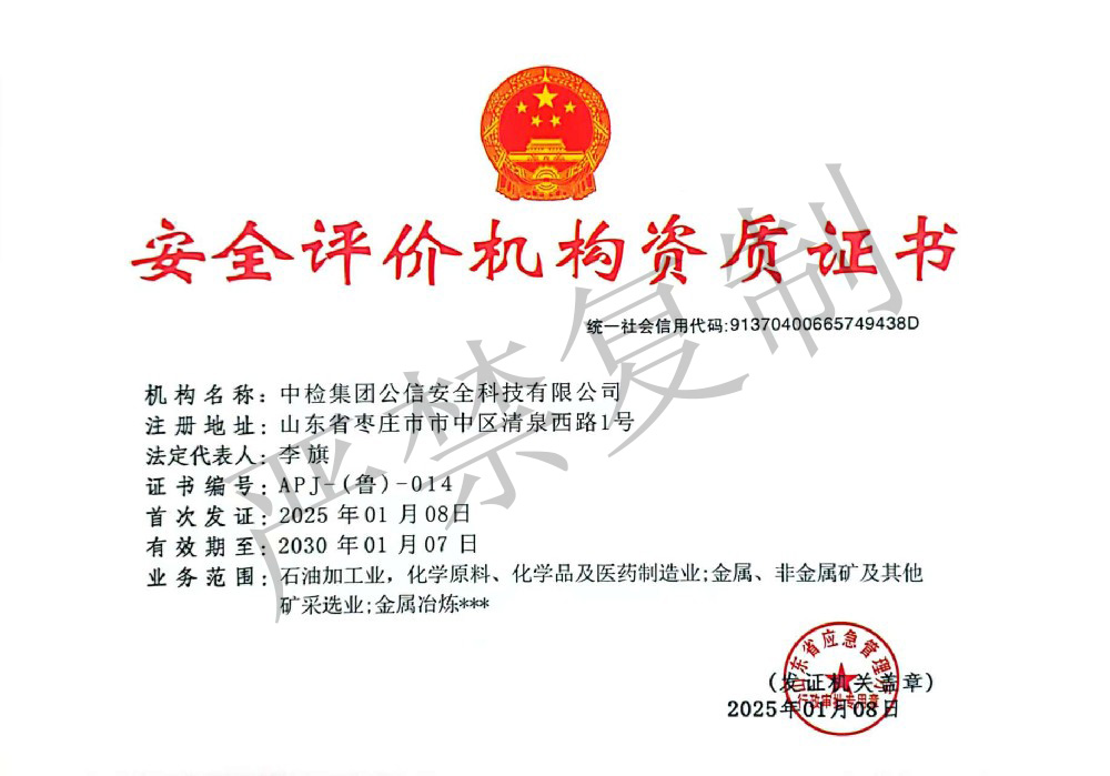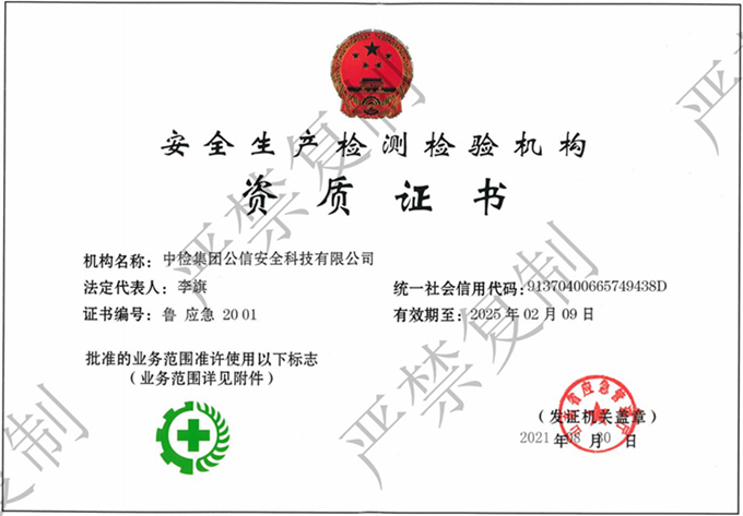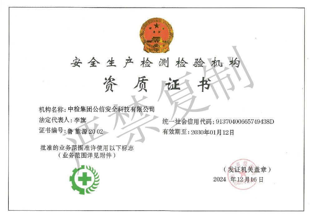 機構名稱:中檢集團公信安全科技有限公司證書編號:APJ-(魯)-014有效期至:2030年01月07日