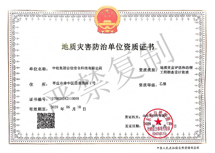 地質災害防治單位資質(地質災害評估和治理工程勘查設計、地質災害治理工程監(jiān)理)