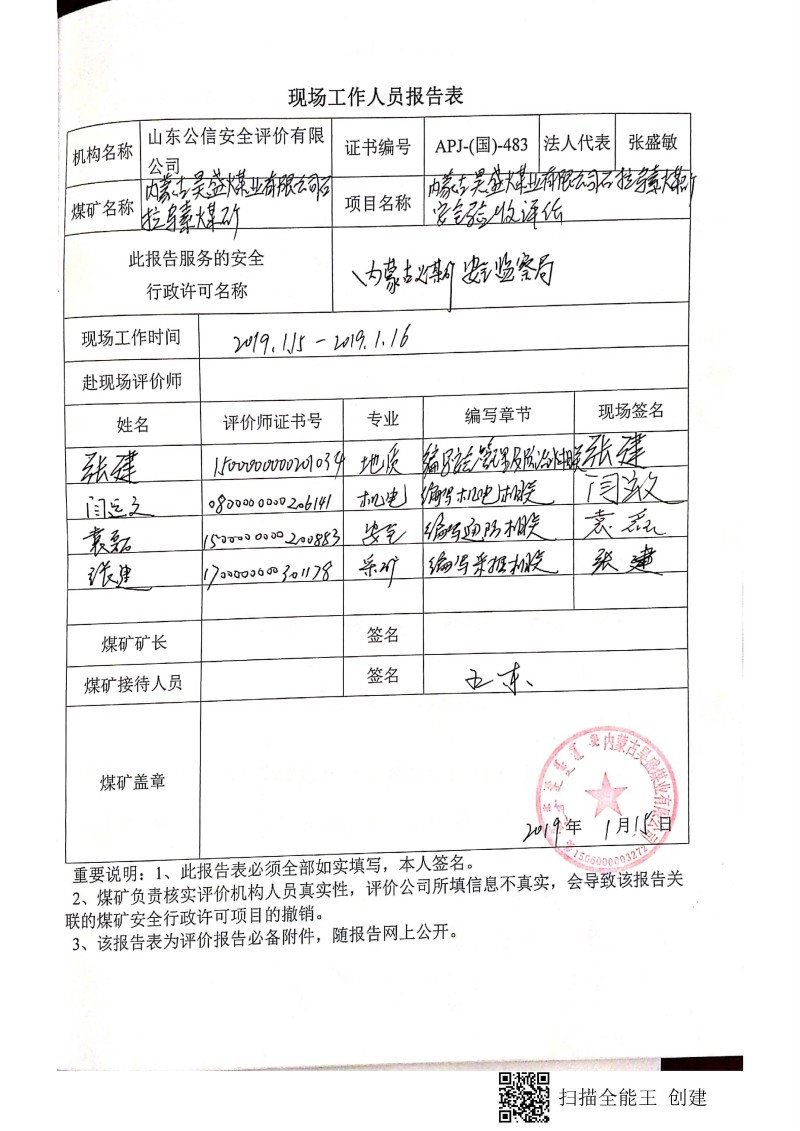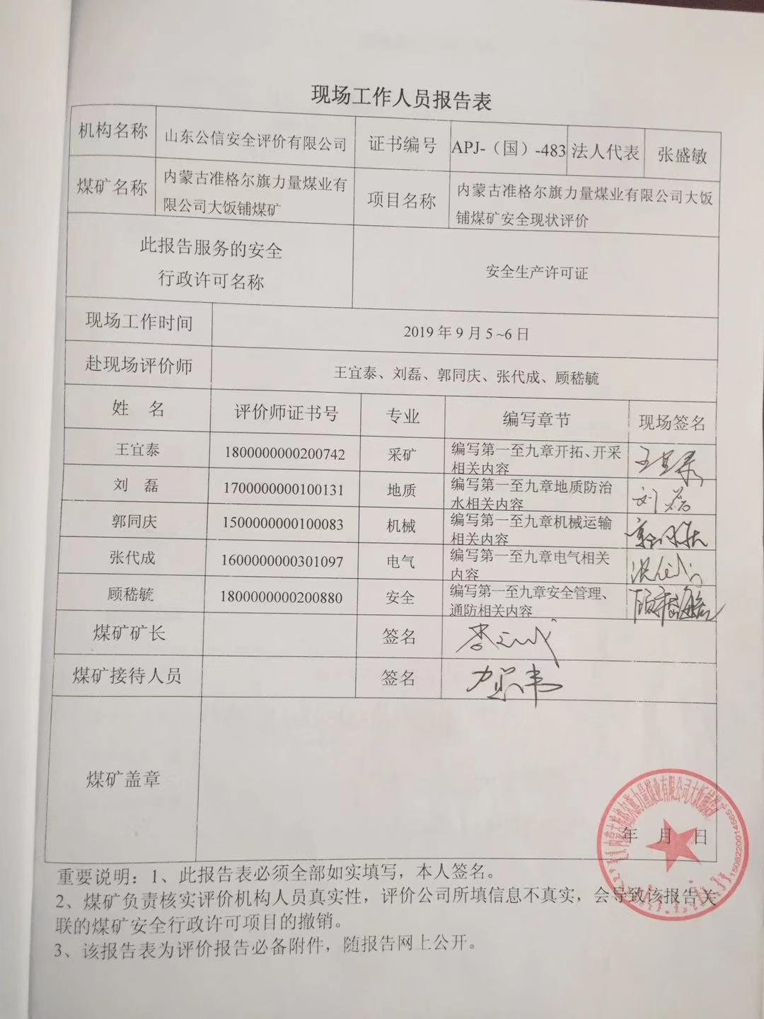 2019年第4季度1.內(nèi)蒙古準(zhǔn)格爾旗力量煤業(yè)有限公司大飯鋪煤礦安全現(xiàn)狀評價報告