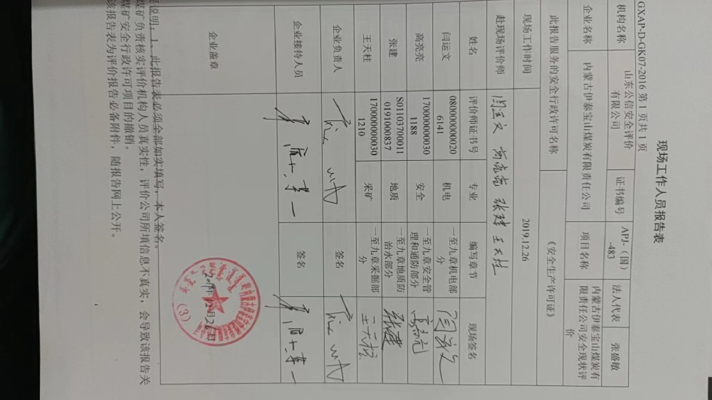 安全評(píng)價(jià)報(bào)告網(wǎng)上公開信息表 季度:一季度 評(píng)價(jià)項(xiàng)目名稱 內(nèi)蒙古伊泰京粵酸刺溝礦業(yè)有限責(zé)任公司酸刺溝煤礦安全