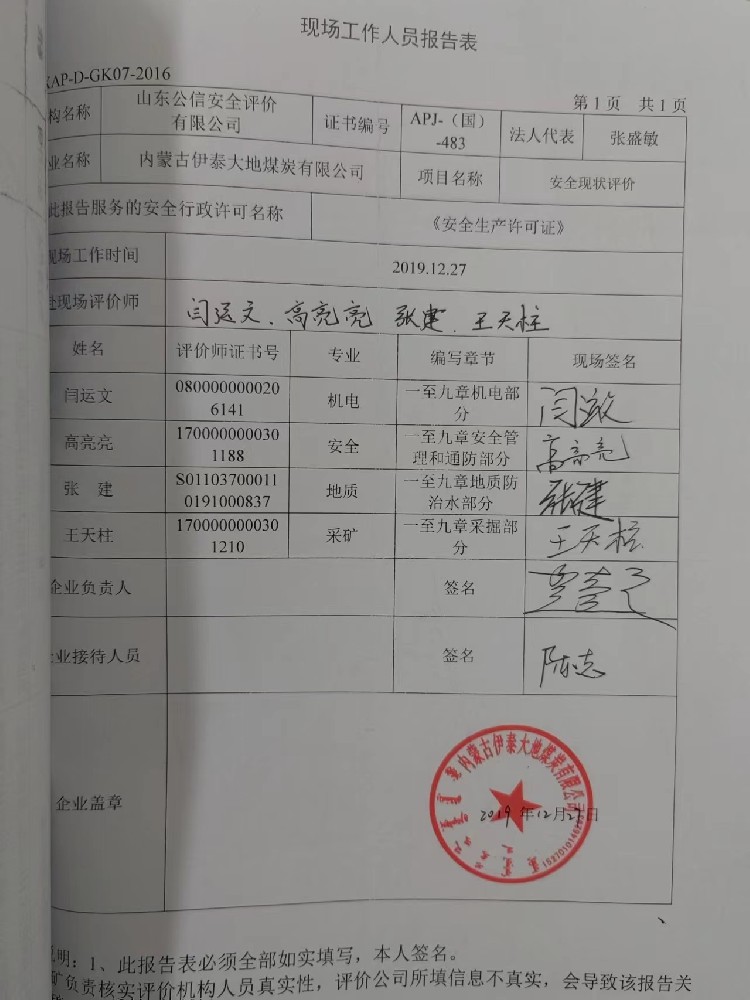 2020年第1季度4內(nèi)蒙古伊泰大地煤炭有限公司大地精煤礦安全現(xiàn)狀評(píng)價(jià)報(bào)告