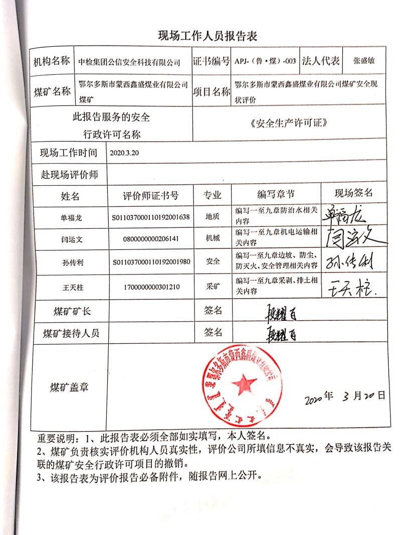 安全評(píng)價(jià)報(bào)告網(wǎng)上公開(kāi)信息表 季度: 二季度 評(píng)價(jià)項(xiàng)目名稱 鄂爾多斯市蒙西鑫盛煤業(yè)有限公司煤礦