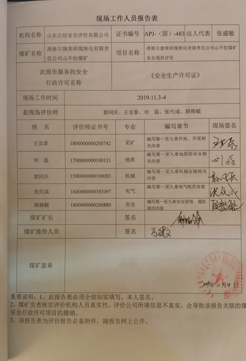 2020年第2季度1.準(zhǔn)格爾旗榮祥煤焦化有限責(zé)任公司山不拉煤礦安全現(xiàn)狀評(píng)價(jià)報(bào)告