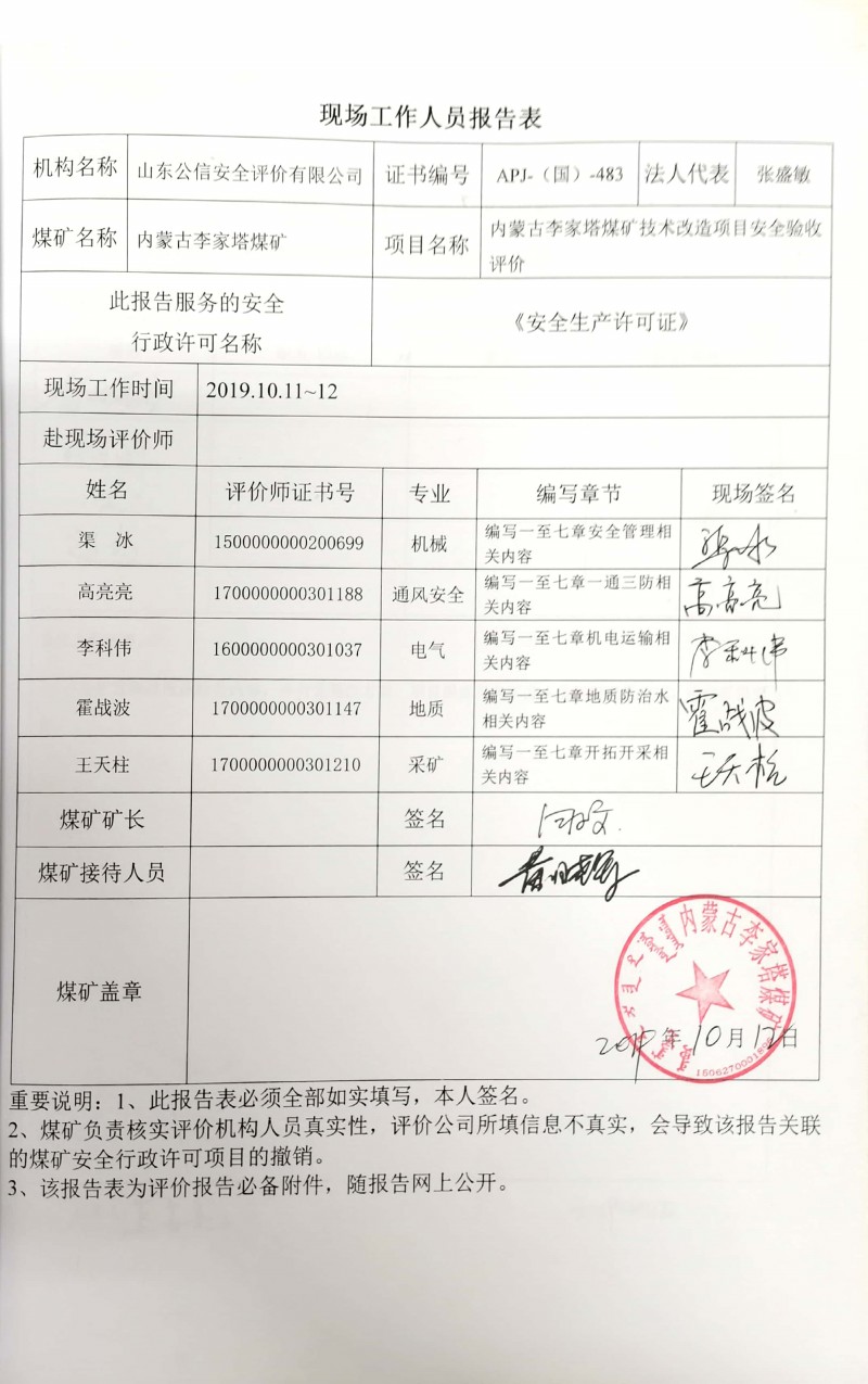 安全評(píng)價(jià)報(bào)告網(wǎng)上公開(kāi)信息表 季度: 二季度 評(píng)價(jià)項(xiàng)目名稱 內(nèi)蒙古李家塔煤礦技術(shù)改造項(xiàng)目安全驗(yàn)收評(píng)價(jià)