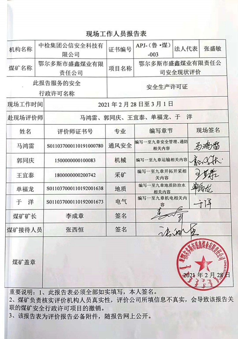 2021年第2季度7鄂爾多斯市盛鑫煤業(yè)有限責任公司安全現(xiàn)狀評價報告