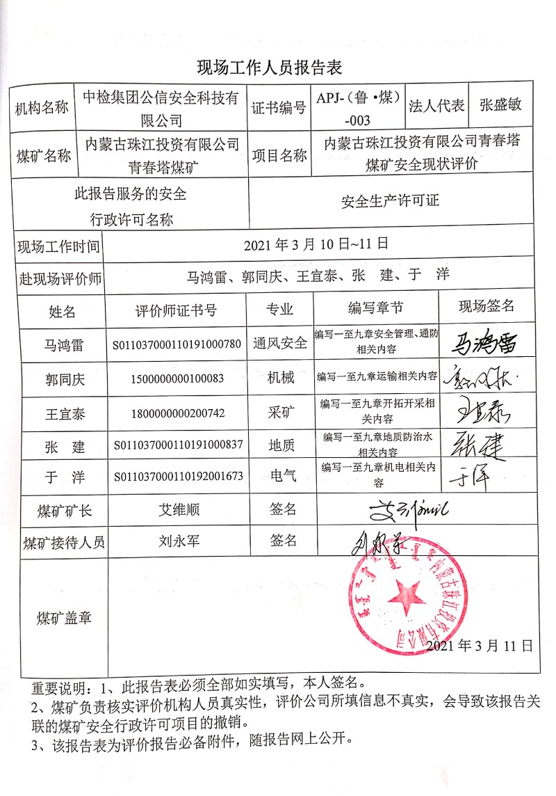 2021年第2季度5內(nèi)蒙古珠江投資有限公司青春塔煤礦安全現(xiàn)狀評價報告