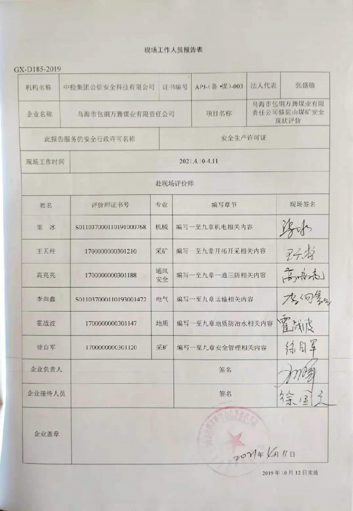 2021年第2季度8烏海市包鋼萬騰煤業(yè)有限責任公司駱駝山煤礦安全現(xiàn)狀評價報告
