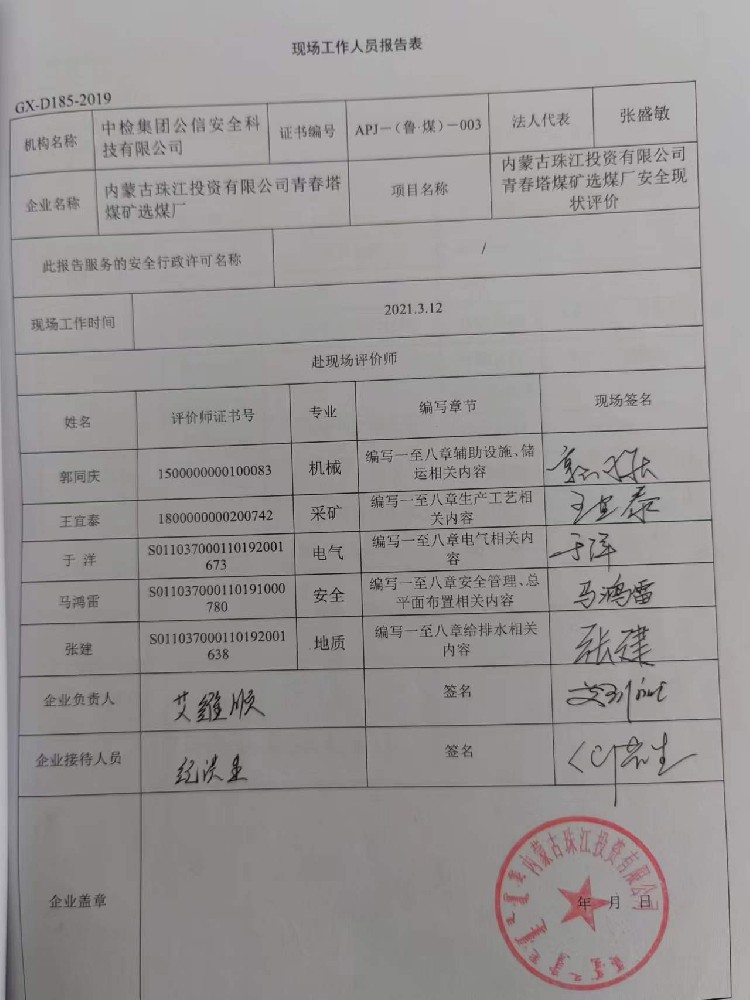 2021年第2季度9內(nèi)蒙古珠江投資有限公司青春塔煤礦選煤廠安全現(xiàn)狀評價