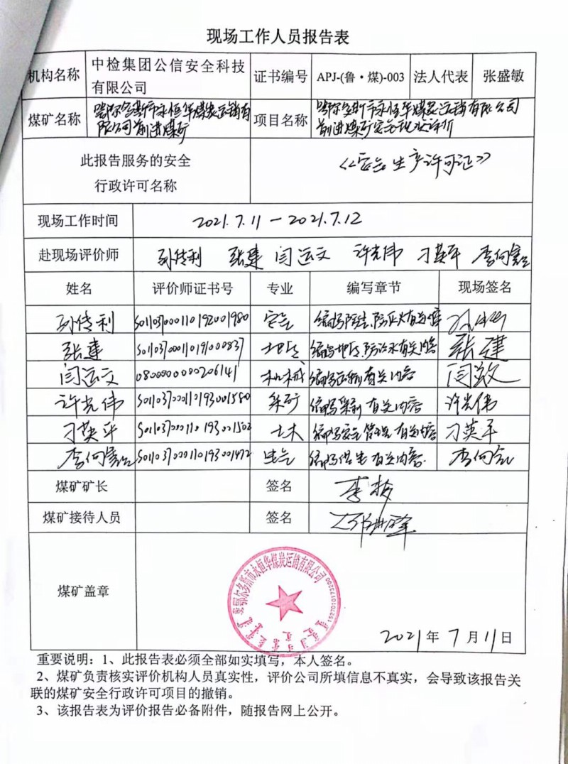 2021年第3季度2.鄂爾多斯市永恒華煤炭運銷有限公司前進煤礦安全現(xiàn)狀評價
