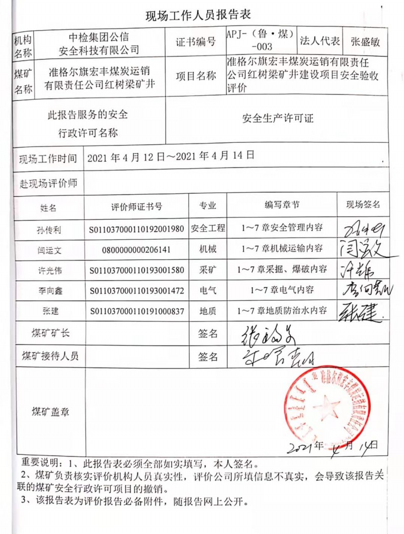 安全評價報告網(wǎng)上公開信息表 季度:三季度 評價項目名稱 準格爾旗宏豐煤炭運銷有限責(zé)任公司紅樹梁礦井建設(shè)項目