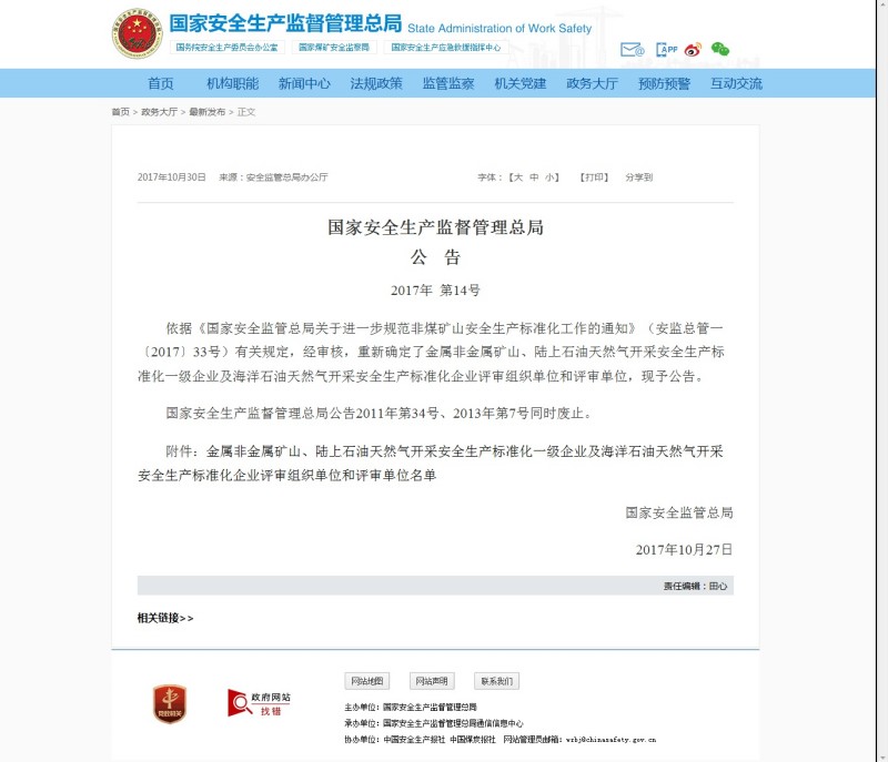 機構名稱:山東公信安全評價有限公司批準文件:國家安全生產監(jiān)督管理局 公告 2017年 第14號