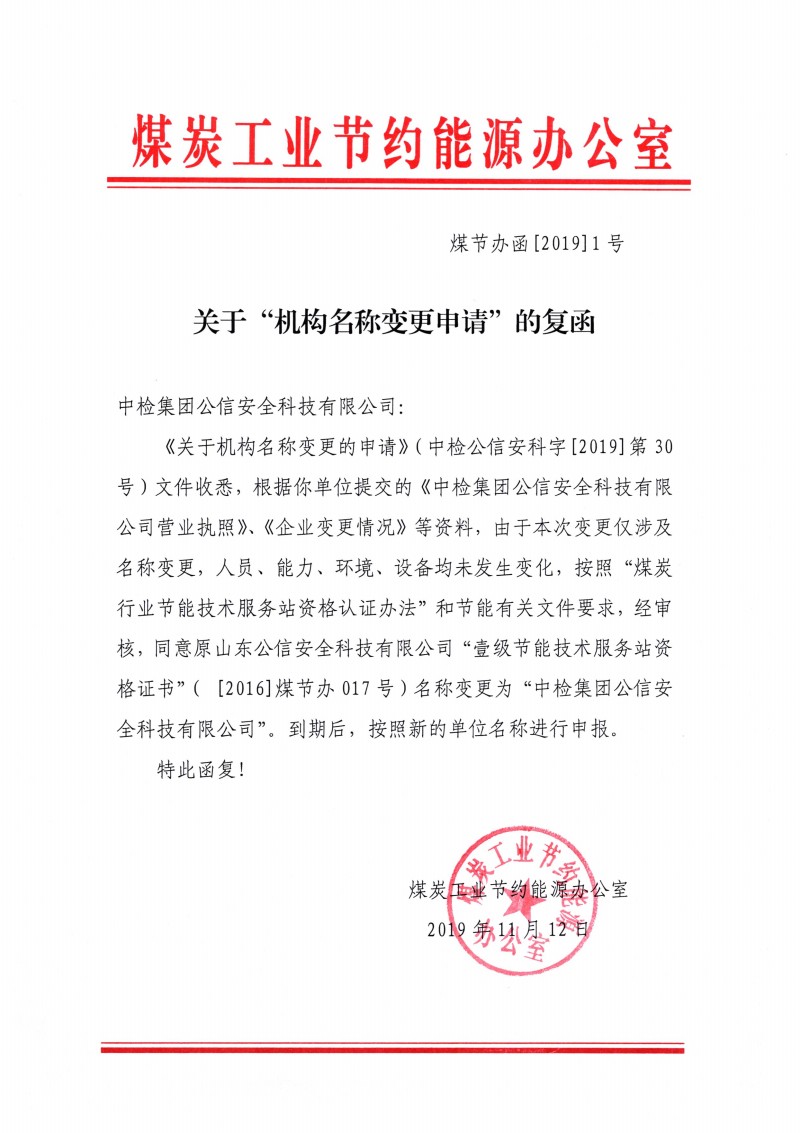 機構名稱:中檢集團公信安全科技有限公司證書編號:[2016]煤節(jié)辦復017號有效期至:2022年9月