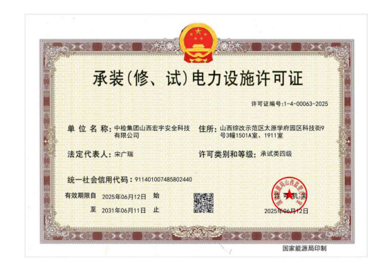 中檢集團山西宏宇安全科技有限公司(以下簡稱“宏宇公司”)通過一段時間的項目考察及調(diào)研,憑借在安全生產(chǎn)檢測檢驗領(lǐng)域的深厚積累與卓越實力,首次獲得國家能源局山西監(jiān)管辦公室頒發(fā)的電力承試···