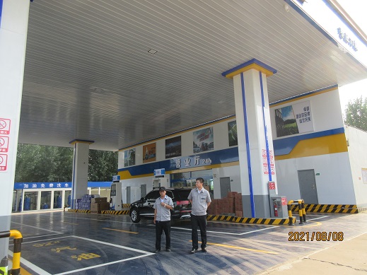 該加油站占地面積約3110m2,設(shè)有3臺(tái)加油機(jī),其中2臺(tái)雙槍加油機(jī),1臺(tái)4槍加油機(jī)。站內(nèi)布置4臺(tái)儲(chǔ)油罐,其中:30m3柴油罐2臺(tái),30m3汽油罐2臺(tái),總?cè)莘e為90m3(柴油罐容積折半計(jì)算),依據(jù)《汽車加油加氣站設(shè)計(jì)與施工規(guī)范(2014年版)》(GB 50156-2012)第3.0.9條判定,該加油站為三級(jí)加油站。 該站現(xiàn)有從業(yè)人員3人,加油站主要負(fù)責(zé)人王乃忠,站經(jīng)理孟祥輝、安全生產(chǎn)管理人員張謙均已參加棗莊市應(yīng)急管理局(原棗莊市安全生產(chǎn)監(jiān)督管理局)組織的安全培訓(xùn),并分別取得了危險(xiǎn)化學(xué)品經(jīng)營(yíng)單位主要負(fù)責(zé)人和安全生產(chǎn)管理人員安全生產(chǎn)知識(shí)和管理能力考核合格證。2017年7月26日,棗莊市公安消防支隊(duì)出具了該加油站的建設(shè)工程消防驗(yàn)收意見書,編號(hào):棗公消驗(yàn)字〔2017〕第0110號(hào),結(jié)論:“經(jīng)資料審查、現(xiàn)場(chǎng)抽驗(yàn)檢查及功能測(cè)試,綜合評(píng)定該建設(shè)工程驗(yàn)收合格。”。2021年3月4日,山東天科防雷工程有限公司出具了該加油站的防雷裝置定期檢測(cè)報(bào)告,編號(hào):天科雷檢字[2021]ZZ-TZ-A056號(hào),結(jié)論:“經(jīng)檢測(cè),已檢測(cè)項(xiàng)目符合現(xiàn)行國(guó)家防雷規(guī)范標(biāo)準(zhǔn)要求。”,有效期至2021年10月1日。該站安裝了卸油、加油油氣回收系統(tǒng)及油氣后端處理系統(tǒng)。 |
