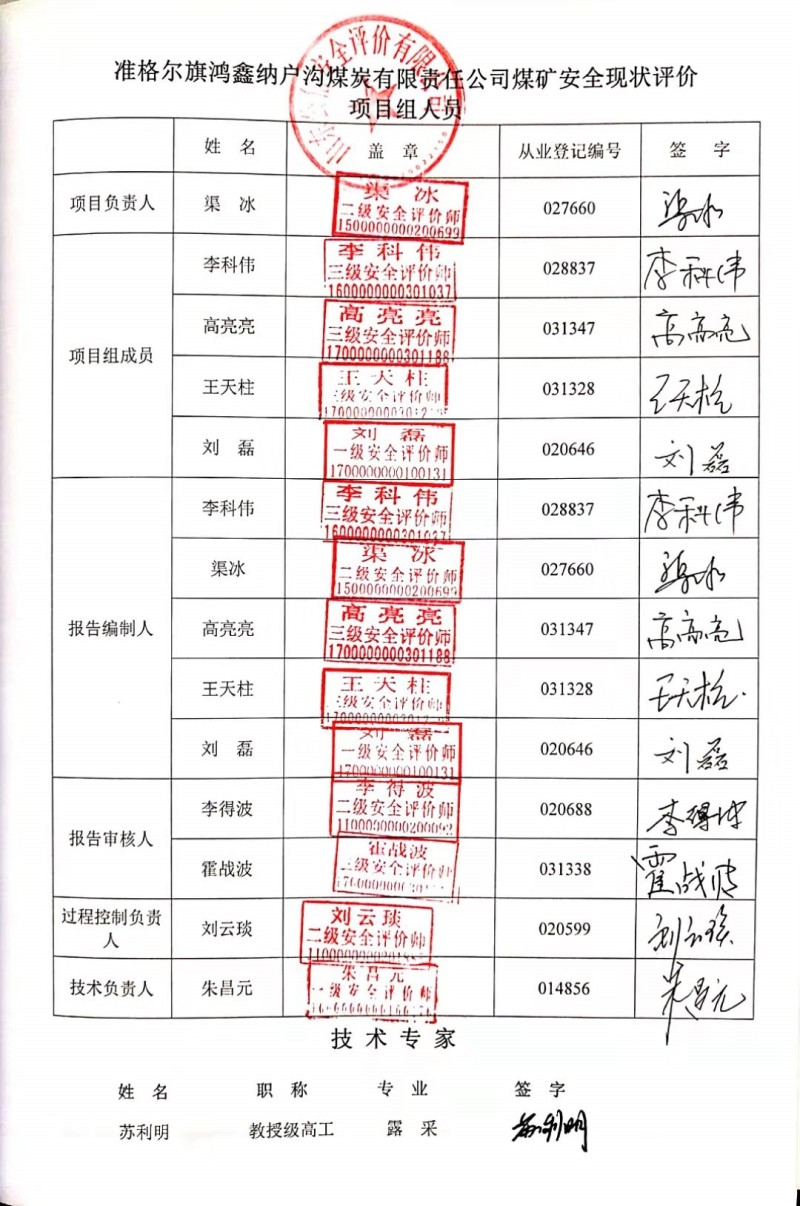 參與安全評(píng)價(jià)工作的注冊(cè)安全工程師: 渠冰、劉磊、高亮亮 |