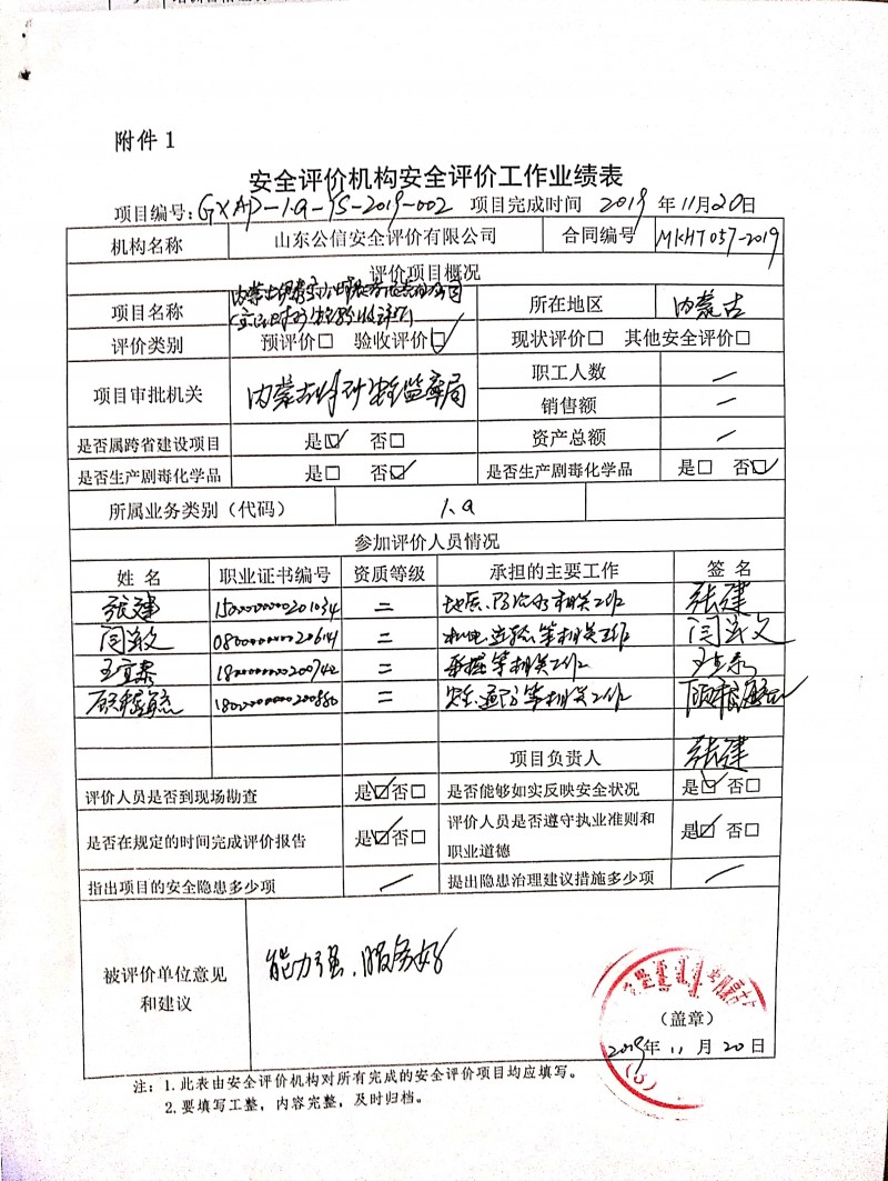 參與安全評價工作的注冊安全工程師: 閆運文、王宜泰 |