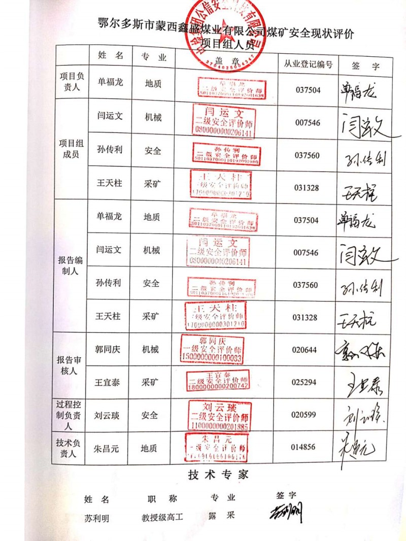 參與安全評價工作的注冊安全工程師: 閆運(yùn)文、孫傳利 |