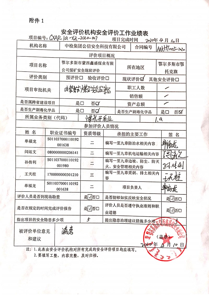 評價項目名稱 | 鄂爾多斯市蒙西鑫盛煤業(yè)有限公司煤礦 | ||||||