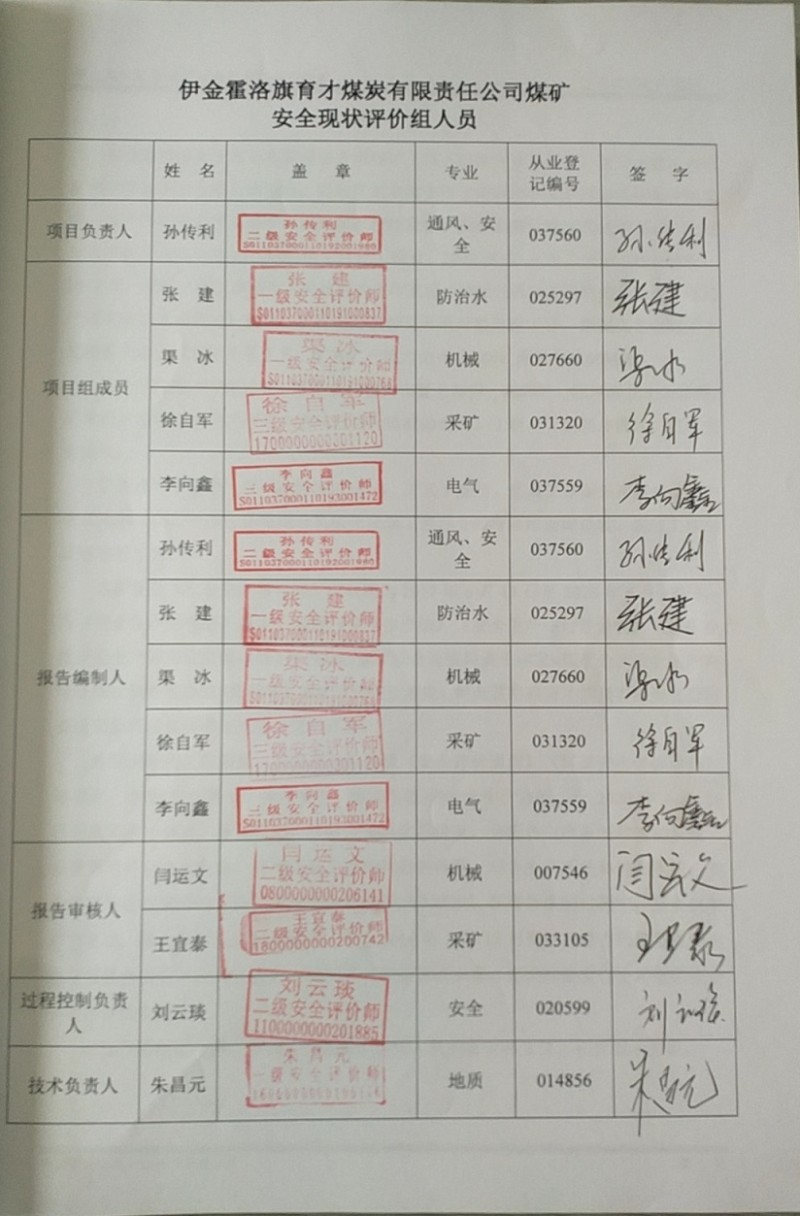 評價項目名稱 | 伊金霍洛旗育才煤炭有限責任公司煤礦安全現(xiàn)狀評價 | ||||||