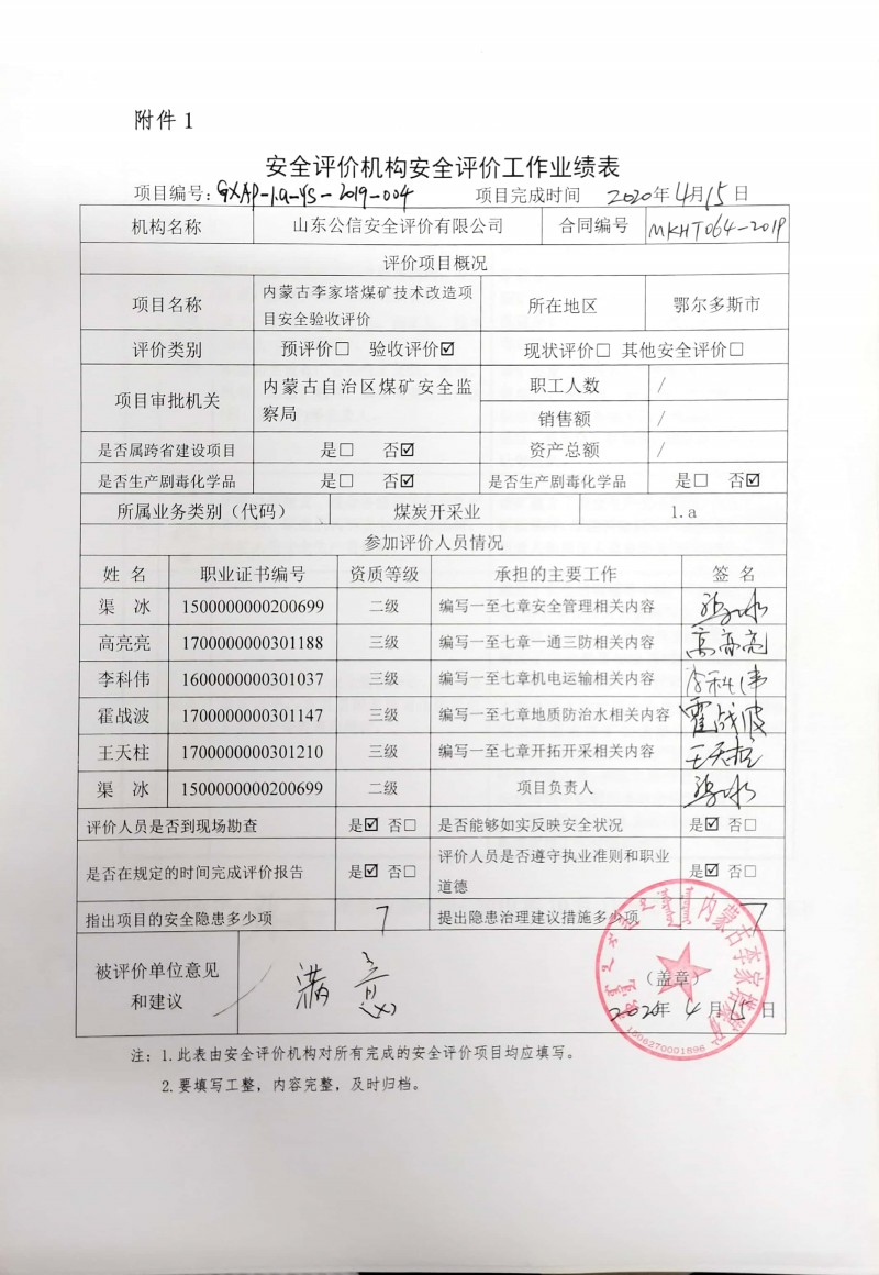 評價項目名稱 | 內(nèi)蒙古李家塔煤礦技術(shù)改造項目安全驗收評價報告 | ||||||