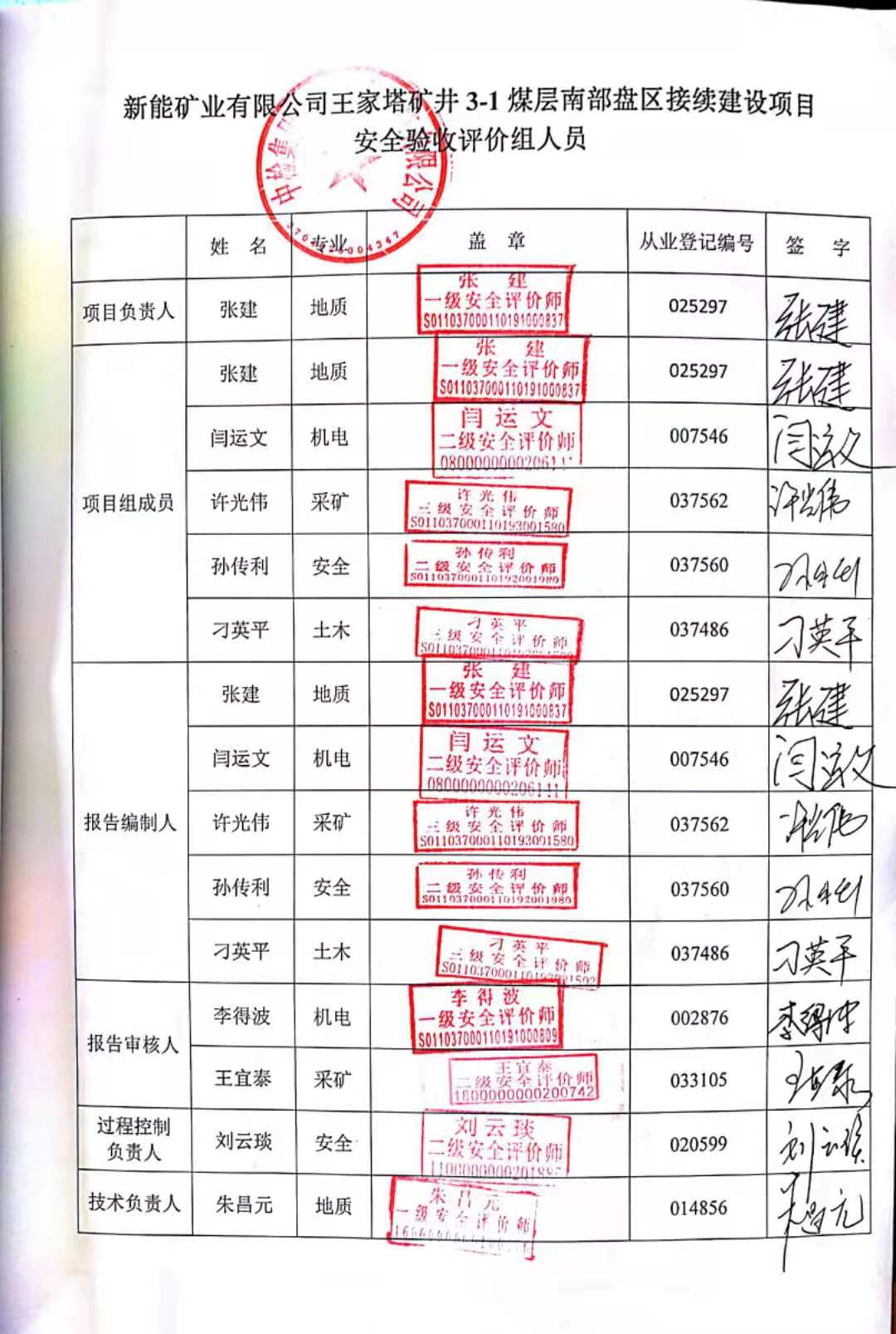 評價(jià)項(xiàng)目名稱 | 新能礦業(yè)有限公司王家塔礦井3-1煤層南部盤區(qū)接續(xù)建設(shè)項(xiàng)目安全驗(yàn)收評價(jià)報(bào)告 | ||||||