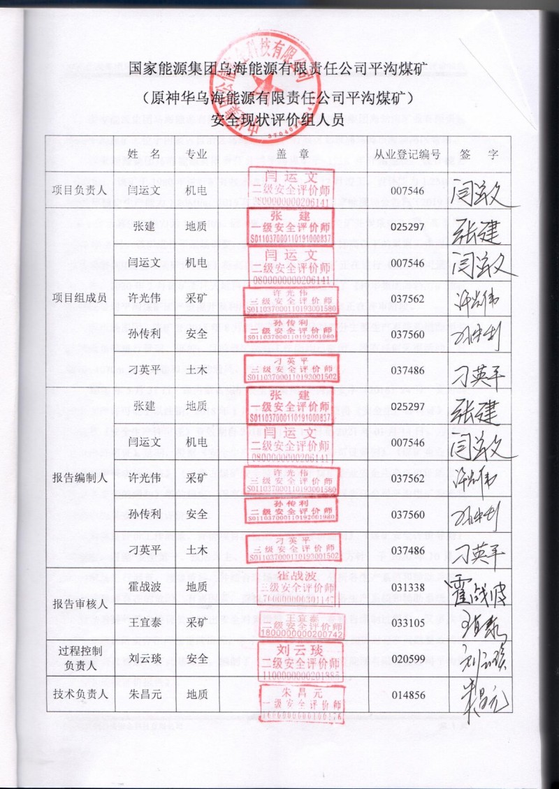 評(píng)價(jià)項(xiàng)目名稱 | 國(guó)家能源集團(tuán)烏海能源有限責(zé)任公司平溝煤礦安全現(xiàn)狀評(píng)價(jià)報(bào)告 | ||||||