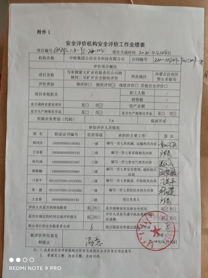 評價項目名稱 | 烏審旗蒙大礦業(yè)有限責(zé)任公司納林河二號礦井建設(shè)項目安全驗收評價報告 | ||||||