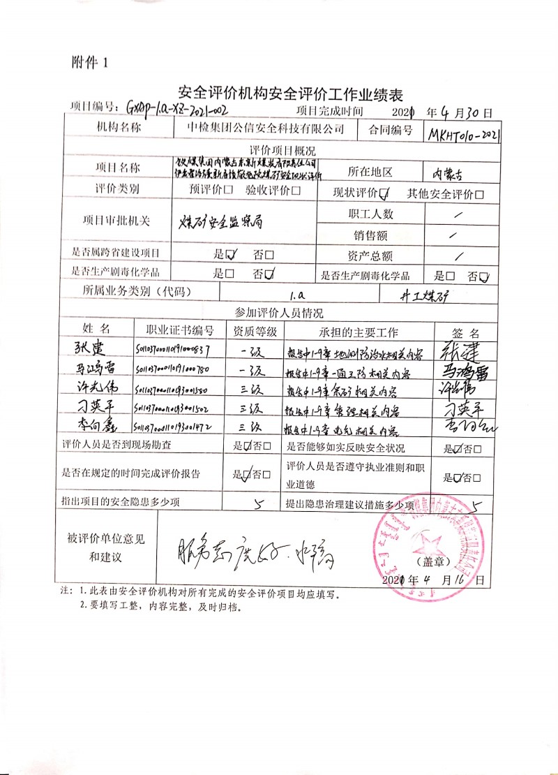 現(xiàn)場開展安全評價(jià)工作的人員、時間及主要任務(wù): 張 建 馬鴻雷 許光偉 刁英平 李向鑫 于2021年3月4至3月5日到現(xiàn)場進(jìn)行調(diào)查、搜集資料,進(jìn)行現(xiàn)場評價(jià)。 于2021年3月14日到現(xiàn)場評價(jià)時存在的問題進(jìn)行了復(fù)查。 |