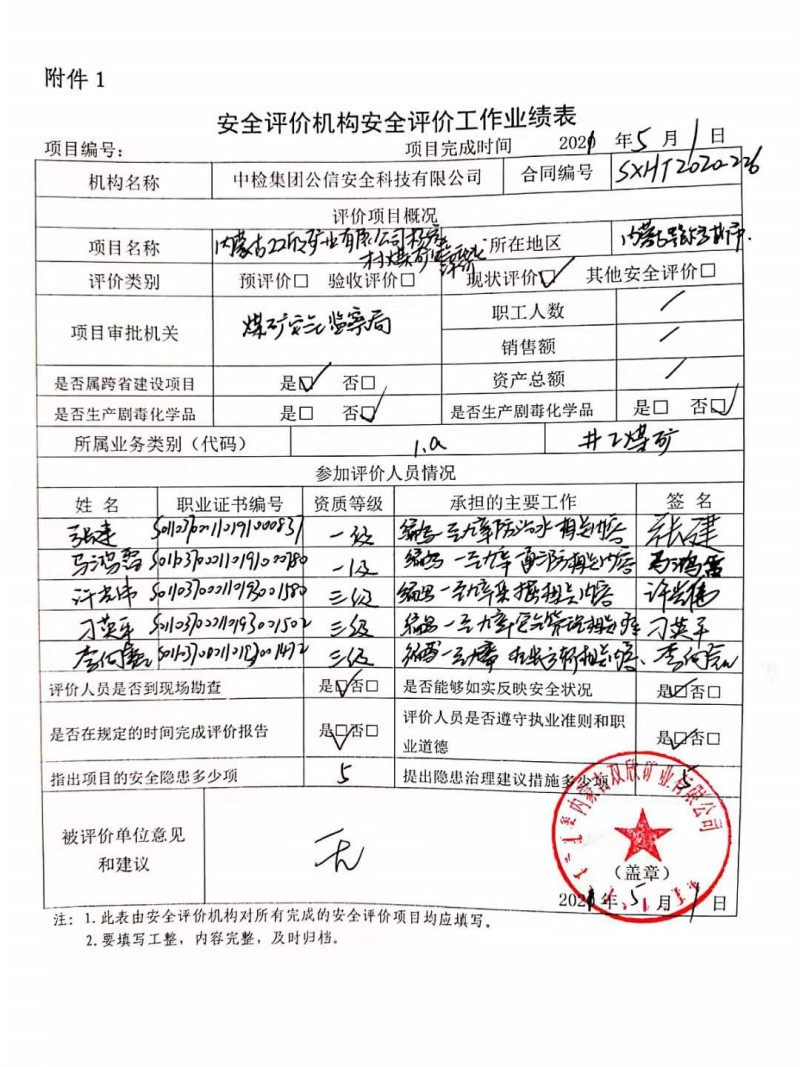 現(xiàn)場開展安全評(píng)價(jià)工作的人員、時(shí)間及主要任務(wù): 張 建 馬鴻雷 許光偉 刁英平 李向鑫 于2021年3月7日-8日到現(xiàn)場進(jìn)行調(diào)查、搜集資料,進(jìn)行現(xiàn)場評(píng)價(jià)。 于2021年3月15日到現(xiàn)場評(píng)價(jià)時(shí)存在的問題進(jìn)行了復(fù)查。 |