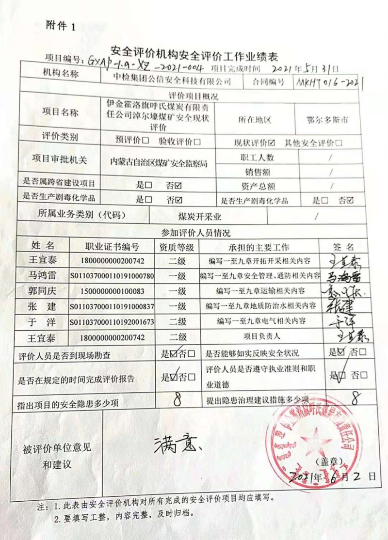 評(píng)價(jià)項(xiàng)目名稱 | 伊金霍洛旗呼氏煤炭有限責(zé)任公司淖爾壕煤礦安全現(xiàn)狀評(píng)價(jià)報(bào)告 | ||||||