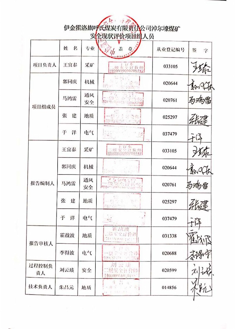 參與安全評(píng)價(jià)工作的注冊(cè)安全工程師: 馬鴻雷、郭同慶、王宜泰 |