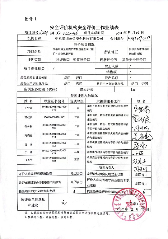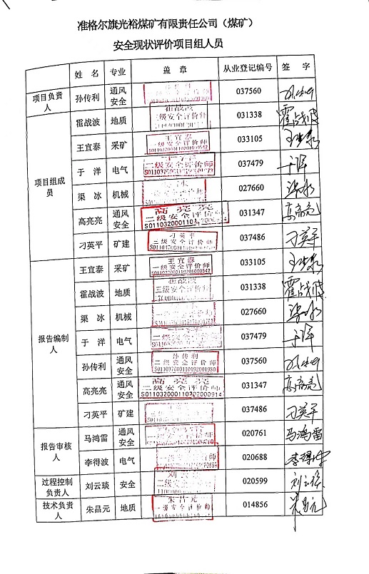 評價項目名稱 | 準格爾旗光裕煤礦有限責(zé)任公司(煤礦)安全現(xiàn)狀評價報告 | ||||||