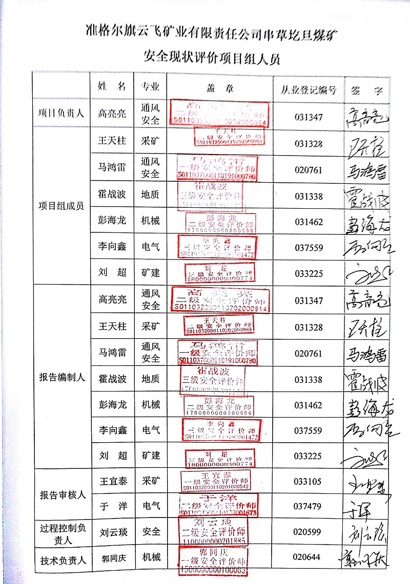 參與安全評(píng)價(jià)工作的注冊(cè)安全工程師: 高亮亮 王天柱 馬鴻雷 霍戰(zhàn)波 彭海龍 |