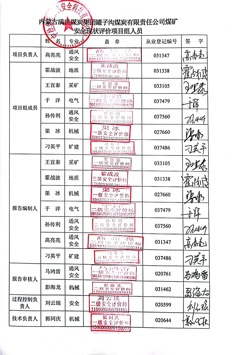 評價項目名稱 | 內(nèi)蒙古滿世煤炭集團(tuán)罐子溝煤炭有限責(zé)任公司煤礦安全現(xiàn)狀評價報告 | ||||||